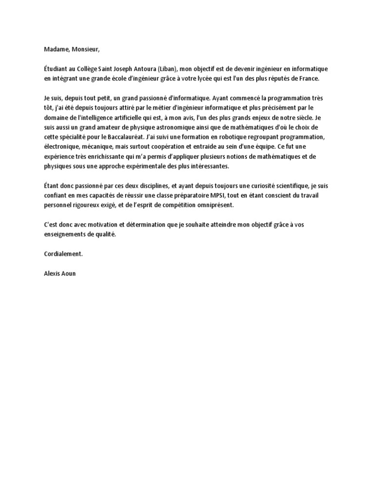 Le modèle de lettre de motivation pour intégrer une prépa cpge mpsi que nous avons créé vous inspirera pour commencer votre courrier de candidature. Cet exemple lettre de motivation classe prépa ingénieur d un voile relevé vous permet de entendre quel at nécessaire cv lettre. C est la première fois que je fais une telle lettre de motivation c est pourquoi j en appelle à votre expérience pour corriger si vous le voulez bien la lettre que j ai faite et me donner d éventuels conseils.